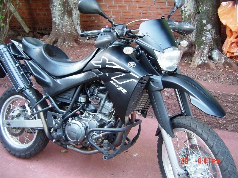 Moto envelopada com adesivo fosco preto.